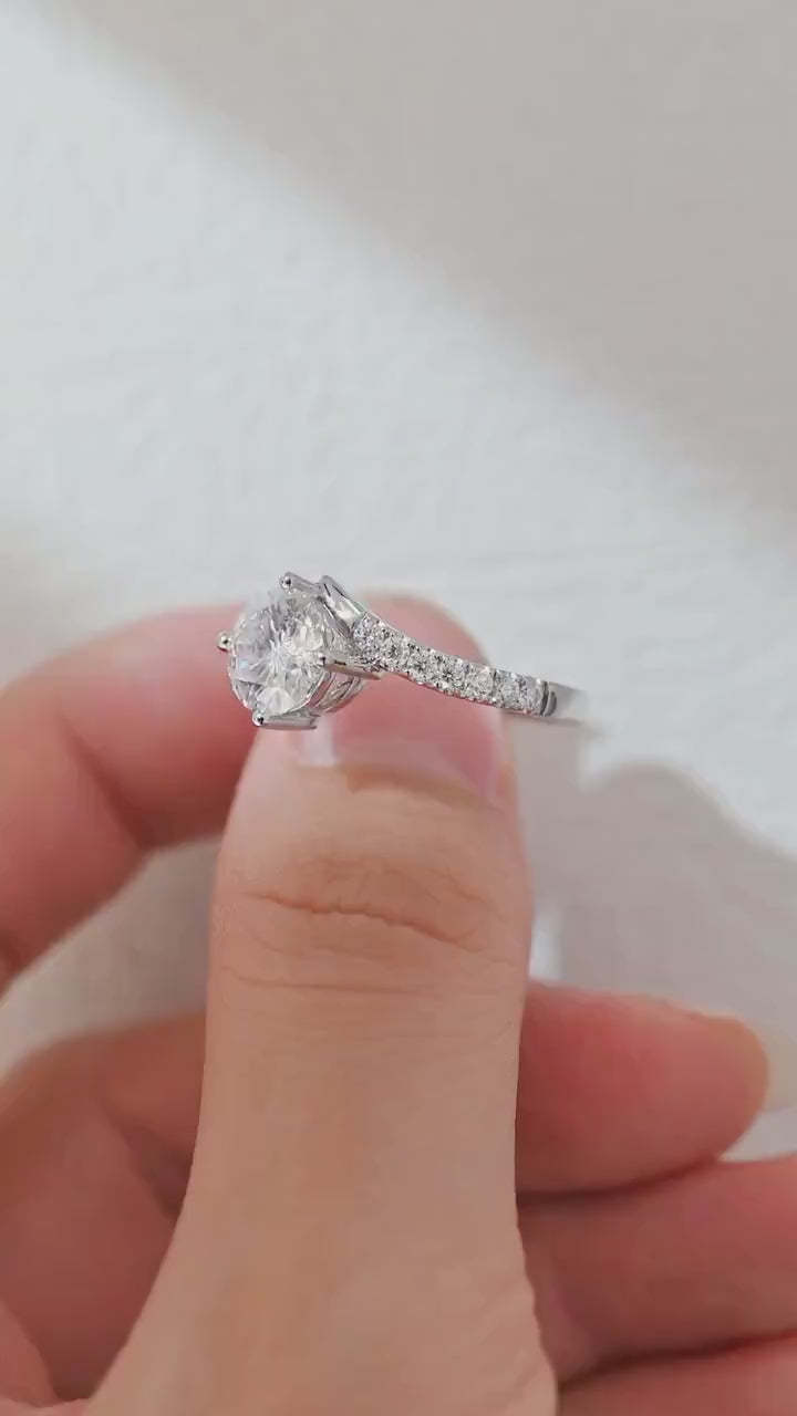 1.0 CT Oval Shape Lab Grown Pave Setting Engagement Ring