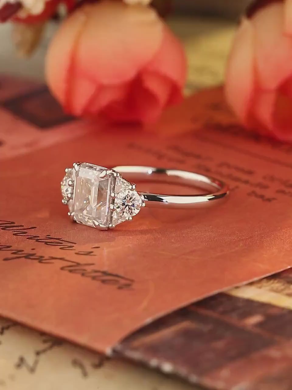 1.0-3.0 CT Emerald Cut Lab Grown Diamond Cluster solitaire Setting Engagement Ring