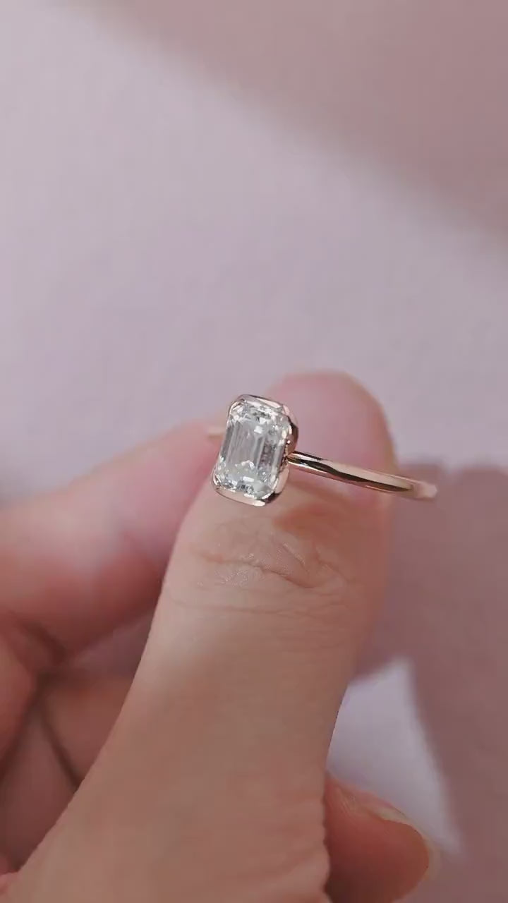 1.0-3.0 CT Emerald Lab Grown Diamond Bezel Solitaire setting Engagement Ring