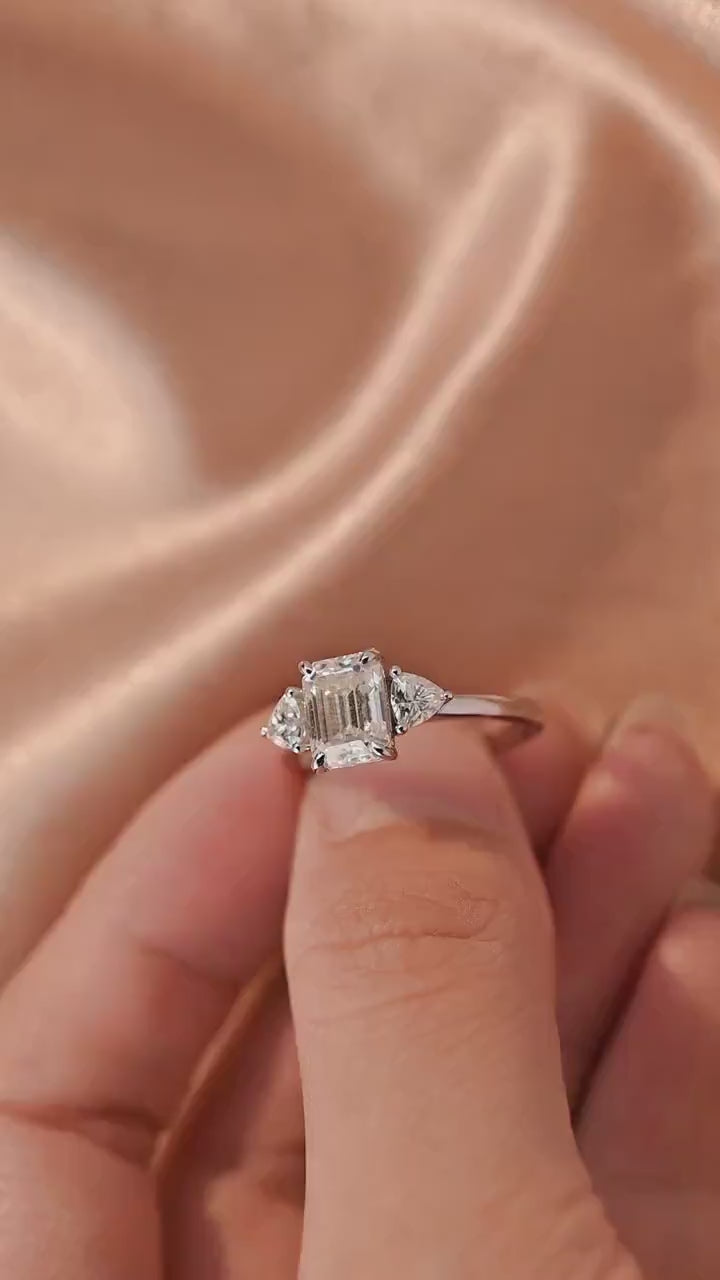 1.0-3.0 CT Emerald Lab Grown Diamond Three Stone Style Engagement Ring