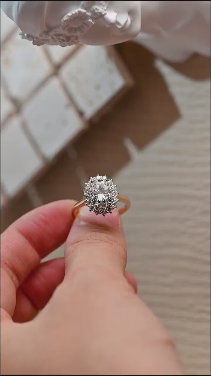 1.0-3.0 CT Oval Lab Grown Diamond Halo Cathedral & Halo Setting Engagement Ring