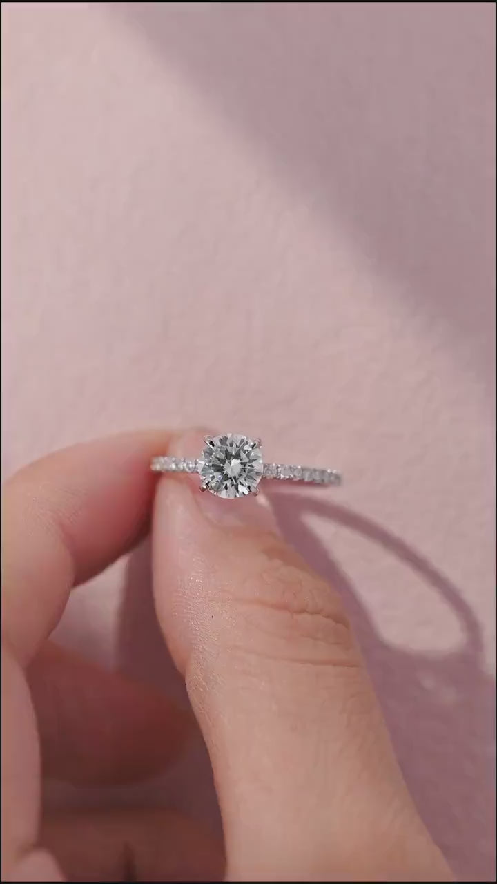 1.0-3.0 CT Round Lab Grown Diamond Hidden Halo Pave Setting Engagement Ring