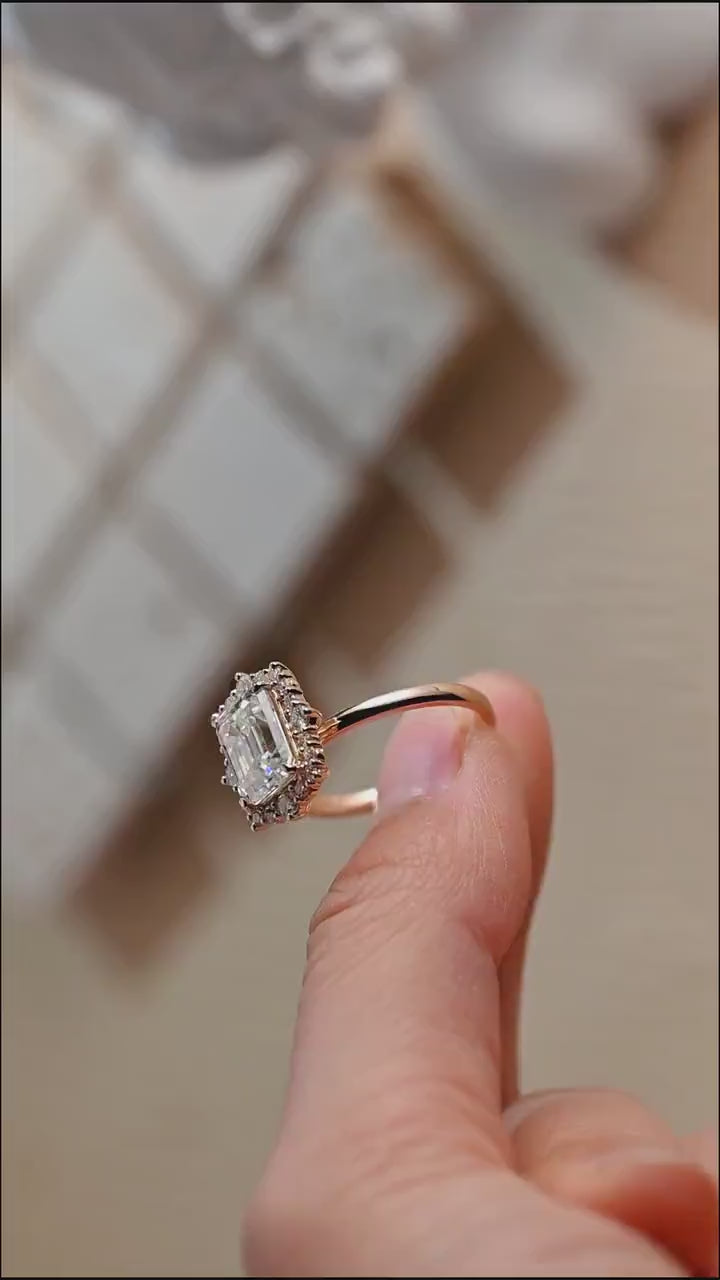 1.0 CT-3.0 CT Emerald Lab GrownDiamond Halo Setting Engagement Ring
