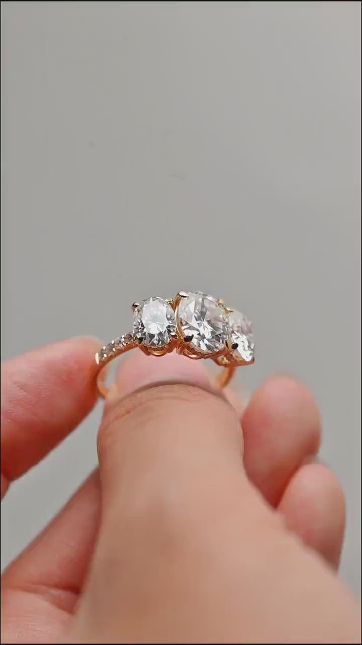 3.0 CT Oval F/VS1 Lab Grown Diamond Three Stone Style Engagement Ring