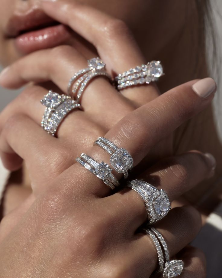 We offer rings in white gold, yellow gold, rose gold, platinum, and sterling silver.